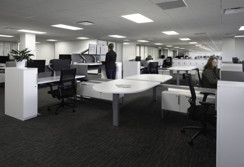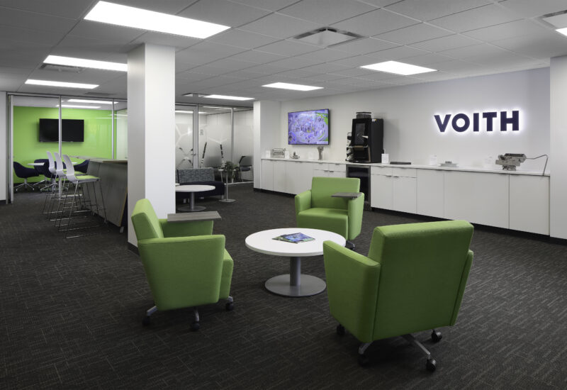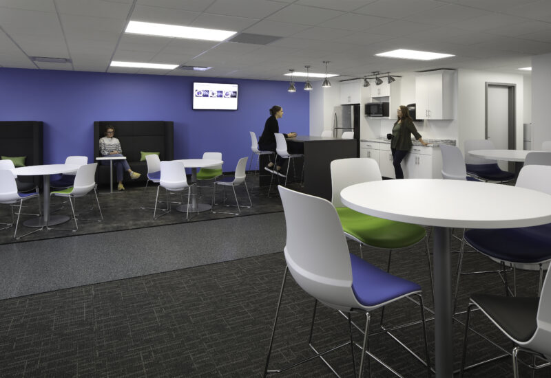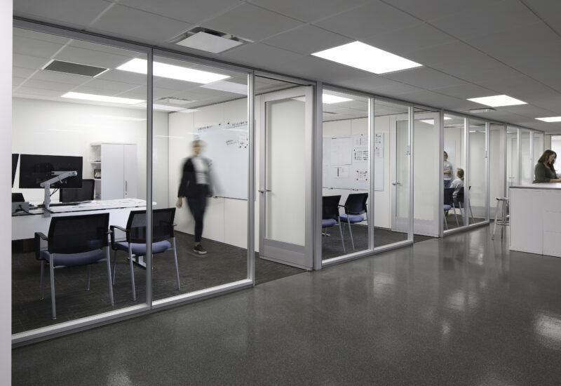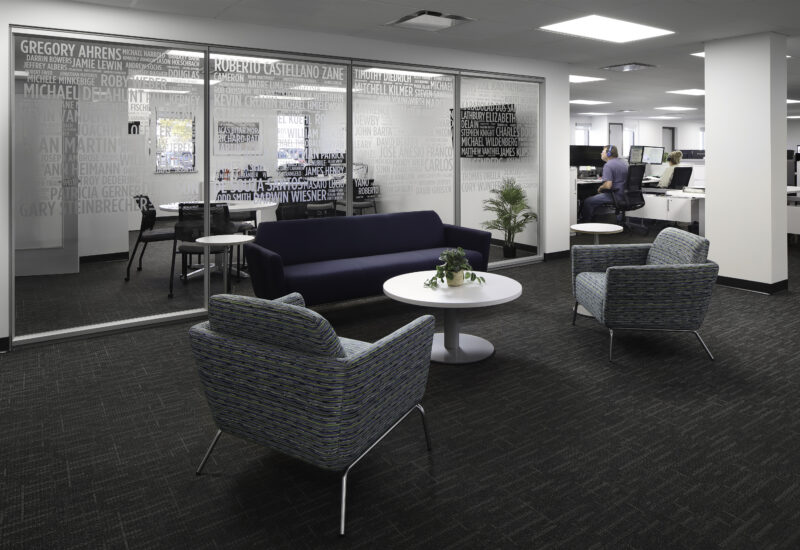 Glass Film honoring Dedicated Employees | Collaborative Area near Workstations and Leadership Offices